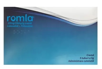 Romla conține două substanțe active numite lidocaină și prilocaină. Aceste substanţe aparţin unui grup de medicamente denumite anestezice locale. Romla determină amorţirea suprafeţei pielii pentru o scurtă perioadă de timp. Se aplică pe piele înainte de anumite proceduri medicale. Aceasta ajută la blocarea durerii la nivelul pielii, cu toate acestea, puteţi încă să mai aveţi senzaţie de presiune și sensibilitate. Contraindicatii: Nu utilizați Romla dacă sunteţi alergic la lidocaină sau prilocaină, alte anestezice locale similare sau la oricare dintre celelalte componente ale acestui medicament. Precauţii: Înainte să utilizaţi Romla, adresaţi-vă medicului dumneavoastră, farmacistului sau asistentului medical. Sarcină, alăptarea şi fertilitatea: Dacă sunteţi gravidă sau alăptaţi, credeţi că aţi putea fi gravidă sau intenţionaţi să rămâneţi gravidă, adresaţi-vă medicului sau farmacistului pentru recomandări înainte de a lua acest medicament. Este puţin probabil ca utilizarea ocazională a Romla în timpul sarcinii să aibă efecte adverse asupra fătului. Substanţele active din Romla (lidocaină şi prilocaină) trec în laptele matern. Totuşi, cantitatea este atât de mică încât, în general, nu există niciun risc pentru copil. Studiile efectuate la animale au arătat că fertilitatea masculilor şi femelelor nu este afectată Conducerea vehiculelor şi folosirea utilajelor: Romla nu influenţează sau are o influenţă neglijabilă asupra capacităţii de a conduce vehicule şi de a folosi utilaje atunci când este utilizat în doza recomandată. Mod de administrare: Utilizaţi întotdeauna acest medicamentexact aşa cum este descris în acest prospect sau așa cum v-a spus medicul dumneavoastră sau farmacistul sau asistenta medicală. Discutaţi cu medicul dumneavoastră sau cu farmacistul sau cu asistenta medicală dacă nu sunteţi sigur. Adulţi, adolescenţi şi copii: Se poate utiliza pentru a amorţi pielea înainte de: Inserţia unui ac (de exemplu, dacă faceţi o injecţie sau o analiză de sânge); Operaţii minore la nivelul pielii. Adulți și adolescenți: De asemenea, se poate utiliza pentru: A amorţi organele genitale înainte de a face o injecție sau proceduri medicale așa cum sunt cele de îndepărtare a verucilor. Un medic sau un asistent medical trebuie să aplice Romla la nivelul organelor genitale. Adulți de asemenea, se poate utiliza pentru a amorţi pielea înainte de: Curăţarea sau îndepărtarea pielii afectate la nivelul ulcerelor membrelor inferioare; Pentru aplicarea pe zone unde pielea nu este intactă, medicamentul trebuie utilizat numai la recomandarea medicului, asistentului medical sau farmacistului. Dacă aveţi orice întrebări suplimentare cu privire la acestmedicament, adresaţi-vă medicului dumneavoastră sau farmacistului. Compozitie: Substanțele active sunt lidocaină și prilocaină. Fiecare gram de cremă conține lidocaină 25 mg și prilocaină 25 mg. Alte ingrediente sunt ulei de ricin polioxil hidrogenat, carbomer 974P, hidroxid de sodiu 10% (pentru ajustarea pH-ului) și apă purificată. Prezentare: 5 tuburi x 5 g