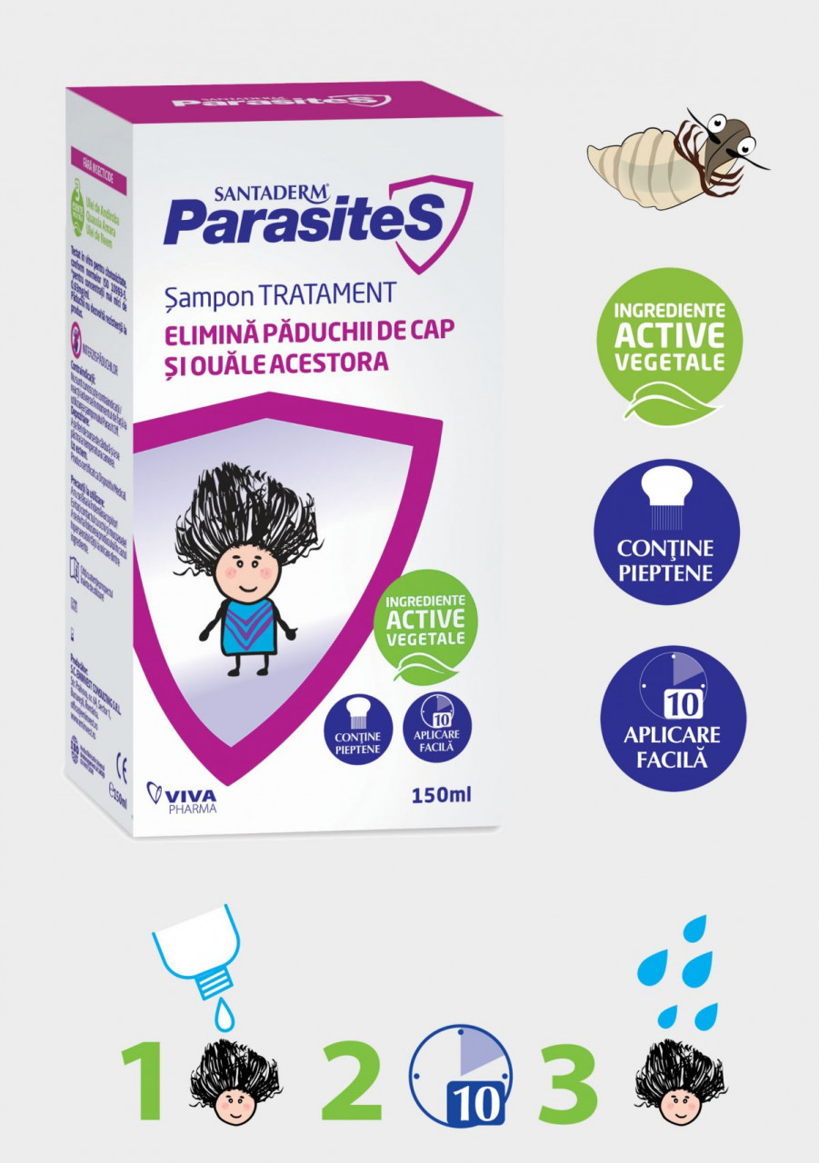 Sampon Parasites tratament paduchi, 150ml + Pieptene Cadou, Santaderm