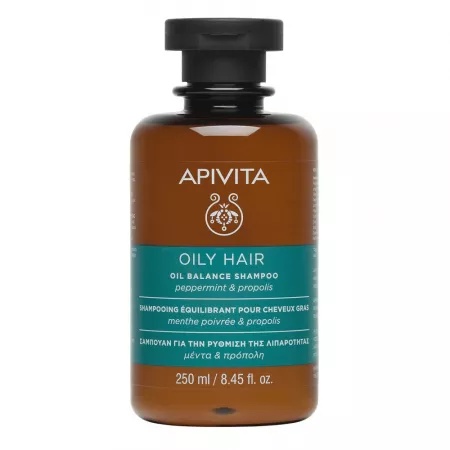 Sampon pentru par gras, 250ml, APIVITA Curata eficient respectand flora naturala a scalpului, cu agenti blanzi de curatare, regleaza excesul de sebum datorita actiunii extractelor de propolis si cimbru. mentine parul hidratat in mod natural, lasandu-l moale si sanatos, cu complexul APISHIELD HS si pantenol; ofera parului o senzatie placuta de prospetime, fara a-l ingreuna, cu uleiuri esentiale organice de menta, lamaie si cimbru; apa din formula a fost inlocuita cu o infuzie de rozmarin organic grecesc pentru pentru proprietatile sale tonice si anti-imbatranire; testat dermatologic. Mod de utilizare: Se samponeaza parul si scalpul, dupa care se clateste din abundenta cu apa calduta. Repetati. A se evita contactul cu ochii. Ingrediente: Aqua/Water/Eau**, Aqua/Water/Eau, Sodium Laureth Sulfate, Cocamidopropyl Betaine, Laureth-7 Citrate, Decyl Glucoside, Sodium Cocoamphoacetate, Capryloyl Glycine, Polysorbate 20, Mel/Honey/Miel, Rosmarinus Officinalis (Rosemary) Leaf* Extract, Thymus Vulgaris (Thyme) Flower/Leaf* Extract, Urtica Dioica (Nettle) Leaf* Extract, Saponaria Officinalis Leaf Extract, Propolis Extract, Panthenol, Menthol*, Mentha Piperita (Peppermint) Oil*, Citrus Limon (Lemon) Peel Oil*, Thymus Vulgaris (Thyme) Flower/Leaf Oil*, Allantoin, Propanediol, Glycerin, Ethylhexylglycerin, Alpha-Glucan Oligosaccharide, Coco-Glucoside, Glyceryl Oleate, Arginine, Tetrasodium Glutamate Diacetate, Sodium Lauroyl Lactylate, PEG-120 Methyl Glucose Trioleate, Polyquaternium-47, Dehydroacetic Acid, Sodium Chloride, Sodium Hydroxide, Parfum/Fragrance, Benzyl Alcohol, Linalool, Hexyl Cinnamal. *Organic cultivation/ Issu de l’agriculture biologique. **Rosmarinus Officinalis Leaf* Aqueous Infusion = Rosemary water / Infusion de romarin. Prezentare: 250ml