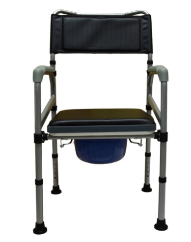 Scaunul are un schelet din otel, este pliabil pentru un transport mai usor si reglabil pe inaltime. Scaunul se inalta suficient cat sa treaca peste vasul de WC din baie, astfel incat poate avea si rolul de inaltator vas WC, util celor care au suferit operatii de sold sau genunchi. Are un aspect foarte placut fata de scaunele clasice si se integreaza frumos cu mobilierul. Un mare avantaj este faptul ca recipientul de colectare se poate atasa si atunci cand paceintul este asezat pe scaun. Specificatii: Inaltime sezut: 36-51 cm; Latime sezut: 43 cm; Adancime sezut: 43 cm; Latimea intre laterale: 47 cm; Inaltimea: 88-103 cm; Latimea: 54 cm; Adancimea: 56 cm.