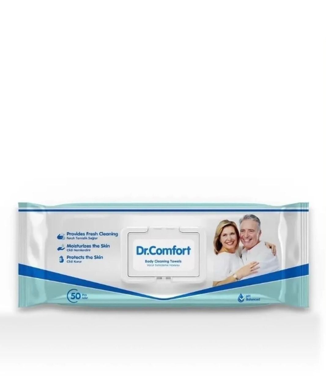 Servetele umede pentru adulti, 50buc, Dr Comfort Șervețelele umede Dr. Comfort sunt concepute special pentru igiena zilnică a adulților, asigurând o curățare delicată, eficientă și rapidă a pielii. Formula lor blândă, îmbogățită cu agenți emolienți și hidratanți , contribuie la menținerea echilibrului natural al pielii și oferă o senzație plăcută de prospețime. Sunt ideale pentru îngrijirea persoanelor cu incontinență sau pentru utilizare generală în îngrijirea corporală , oferind o alternativă practică la spălarea clasică. Materialul moale, texturat, permite o curățare completă fără a irita pielea, chiar și în zonele sensibile. Produs testat dermatologic , fără alcool și fără parabeni, potrivit pentru toate tipurile de piele, inclusiv pielea sensibilă. Fabricat în conformitate cu Regulamentul (CE) nr. 1223/2009 privind produsele cosmetice. Mod de utilizare: Deschideți capacul și ridicați sigiliul protector. Extrageți un șervețel și curățați ușor zona dorită. După utilizare, închideți bine ambalajul pentru a preveni uscarea produsului. Numai pentru uz extern. Precauții: Evitați contactul cu ochii. A nu se utiliza pe pielea iritată sau lezată. A nu se lăsa la îndemâna copiilor. Numai pentru uz extern. Prezentare: Pachet resigilabil cu 50 de șervețele umede .