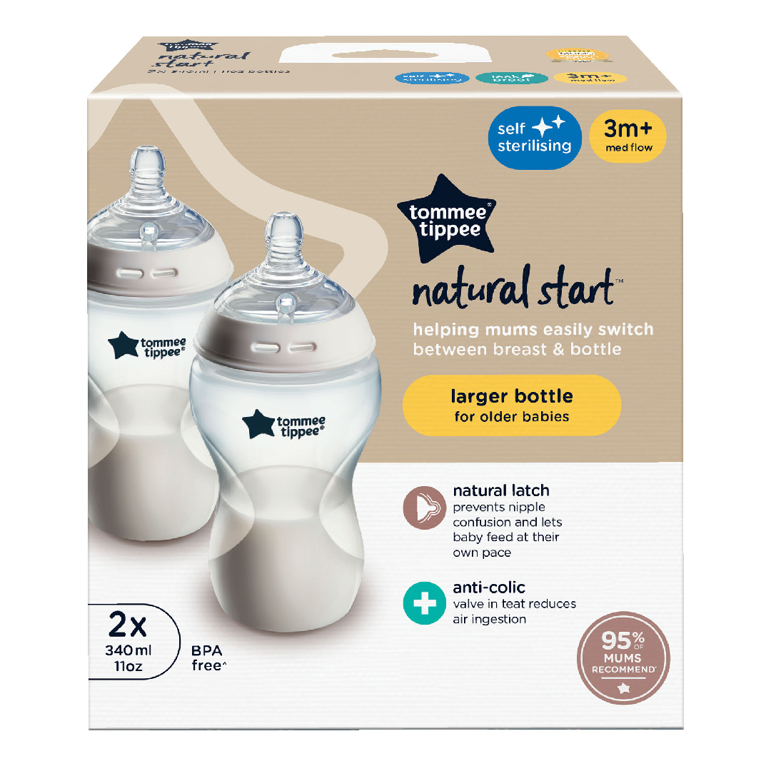 Set biberoane cu autosterilizare Natural Start, 3 luni+, 2 bucati*340 ml, Tommee Tippee