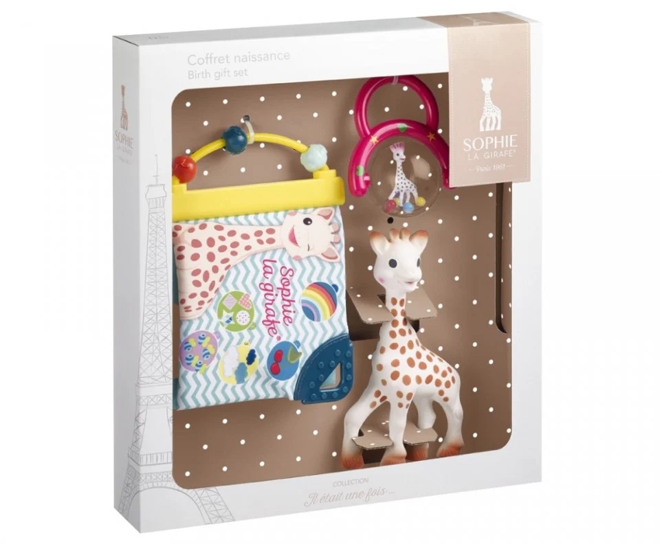 Set cadou cu girafa Sophie, Zornaitoare si carticica cu activitati, +0L, 010325, Vulli