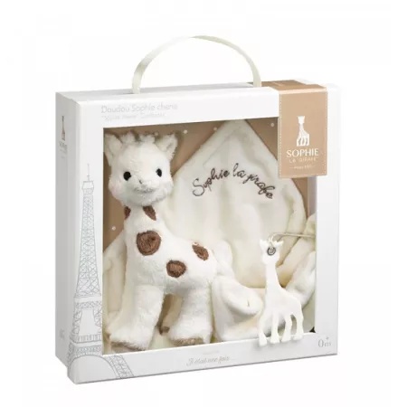 Set Girafa Sophie Cherie si batistuta comforter +0luni, 850734, Vulli Sophie are prinsa de coada sa o batistuta moale si brodata. Cele 2 articole sunt foarte usoare si fabricate din materiale diferite pentru varietatea simtului tactil. Sophie are pete contrastante si va fi usor de recunoscut de catre bebelus. Acest set va fi un tovaras perfect peste zi! Varsta: 0 luni +