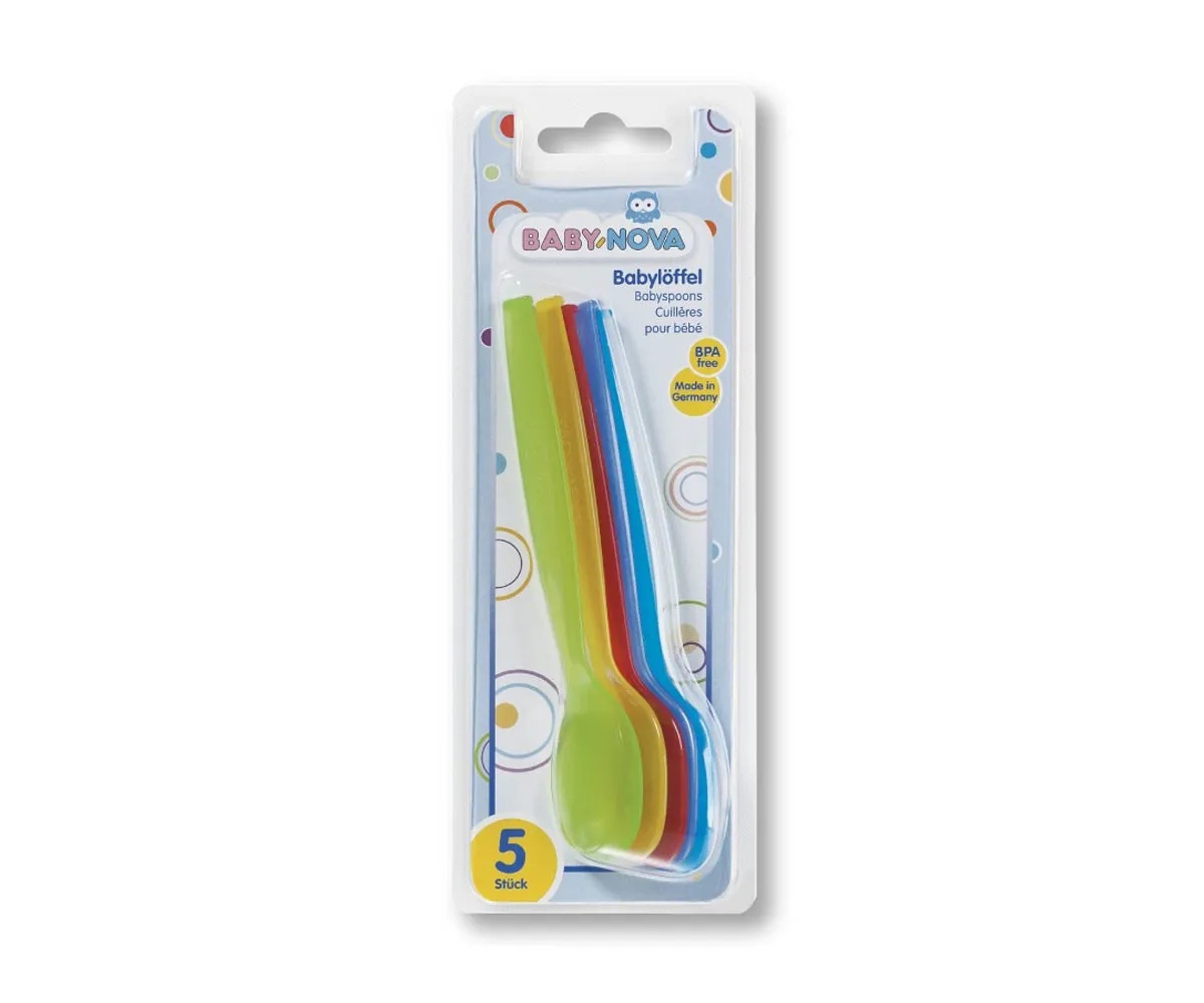 Set lingurite din plastic, diferite culori, 6luni+, 34602, Baby Nova Aceste lingurițe sunt special adaptate pentru hrănirea sugarului și pentru a-l ajuta să învețe să mănânce cu tacâmuri. Se pot fierbe și spăla în mașina de spălat vase. Prezentare: 5 bucati / blister