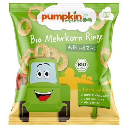 Snack bio inele din multicereale cu mere si scortisoara 8l+, 20g, Pumpkin OrganicsSnack bio inele din multicereale cu mere si scortisoara 8l+, 20g, Pumpkin Organics