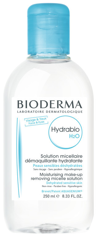 Solutie micelara hidratanta Hydrabio H2O, 250 ml, Bioderma Solutie micelara care curata si elimina machiajul, stimuleaza hidratarea si respecta fragilitatea pielii sensibile. Piele deshidratata sau sensibila Hydrabio H2O este prima solutie micelara perfect compatibila cu pielea. Proprietati: – esterii de acizi grasi, elemente constitutive ale micelelor, sunt similari cu fosfolipidele membranei cel