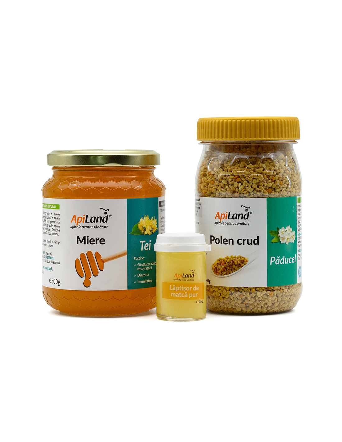 Calitatea somnului este diminuată de stresul și agitația zilnică iar găsirea unor soluții naturale pentru un somn liniștit este esențială. Produsele apicole pot fi un aliat de nădejde in acest sens. În stup găsim soluții naturale pentru a scăpa de insomnii și a obține un somn profund și odihnitor. Am selecționat cele mai potrivite produse și le-am grupat în acest pachet care promovează relaxarea și somnul liniștit.Rolul fiecărui produs din pachetul Somn Liniștit:Laptișorul de matcă pur conține în mod natural o gamă variată de substanțe benefice pentru somnul sănătos. Printre acestea se numără magneziul, vitamina B6 și triptofanul, elemente esențiale în promovarea relaxării și a unui somn odihnitor. Aceste componente din lăptișorul de matcă contribuie la reglarea activității nervoase, reducând stresul și tensiunea, aspecte recunoscute ca factori cheie în instaurarea insomniilor. Adoptând o rutină de consum regulat a lăptișorului de matcă pur, putem favoriza menținerea unui somn liniștit pe tot parcursul nopții.Mierea de tei este apreciată pentru proprietățile sale calmante și sedative. Datorită conținutului său bogat de antioxidanți și substanțe antiinflamatorii, mierea de tei ajută la reducerea tensiunii nervoase și promovează un somn liniștit. Consumată înainte de culcare, mierea de tei poate induce o stare de relaxare și confort. Polenul crud de păducel este o altă comoară apicolă care poate fi de ajutor în eliminarea insomniilor. Acesta este un tonic natural pentru sistemul nervos și are capacitatea de a îmbunătăți calitatea somnului. Prin aportul său de substanțe nutritive esențiale, polenul crud de păducel contribuie la reducerea oboselii și la inducerea unui somn profund și odihnitor. Recomandare consum:BeneficiiImportant! Deoarece produsul include ingrediente provenite din surse naturale, acesta nu este standardizat din punct de vedere al proprietăților organoleptice. Astfel, pot exista variații privind culoarea, mirosul sau aspectul de la un lot la altul, fără a influența eficiența sau siguranța produsului.Fiecare lot de materie primă și de produs finit sunt supuse unui riguros proces de verificare, pentru asigurarea eficienței, biodisponibilității și siguranței corespunzătoare.