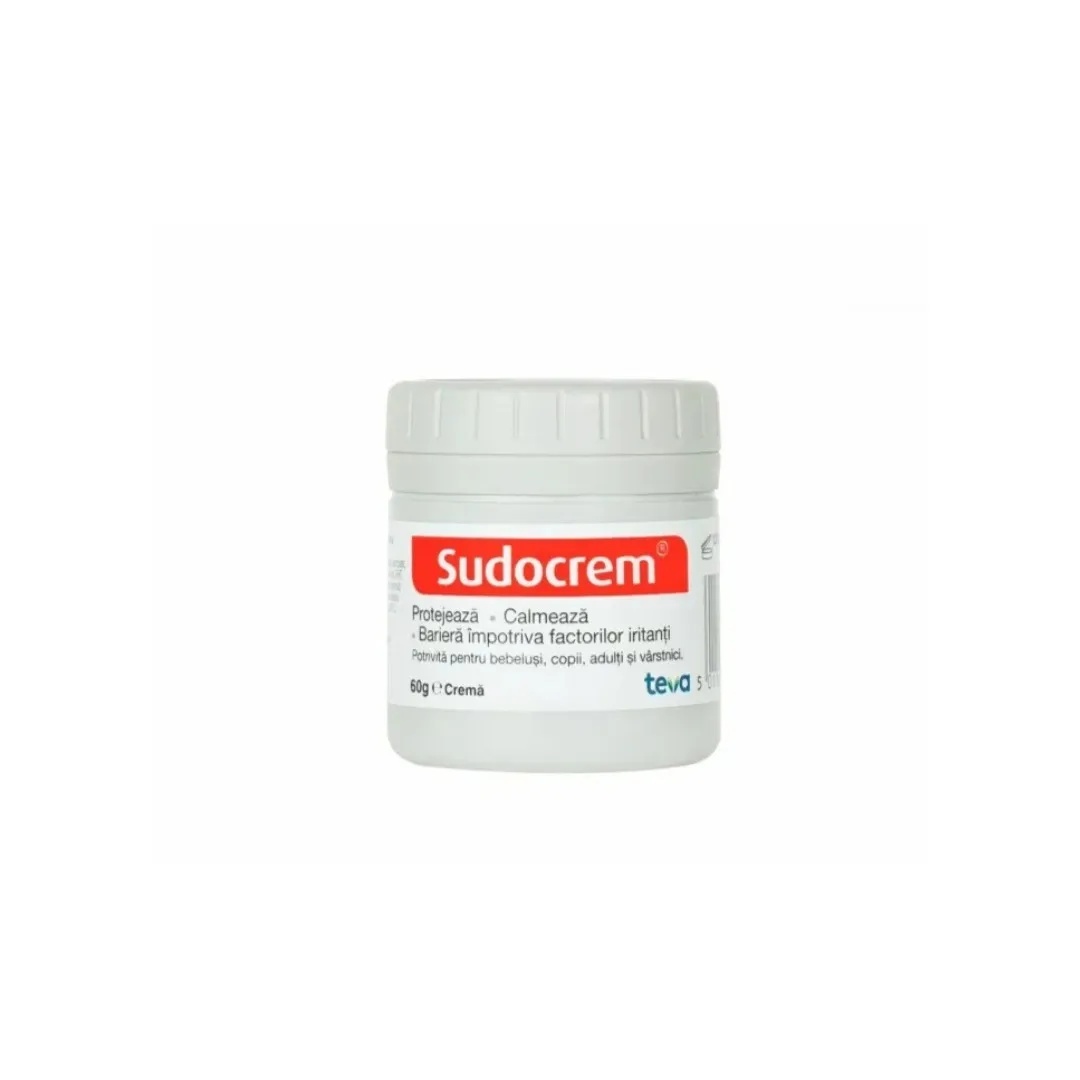 Crema pentru protectia zilnica a pielii, 60 gr, Sudocrem Sudocrem este o cremă versatilă, cu o formulă delicată, potrivită pentru toate tipurile de piele. Ajută la calmarea roșeții, îngrijește și menține aspectul natural al pielii. Mod de utilizare: Cremă se aplică în strat subțire. Un strat subțire al preparatului este suficient pentru a asigura o protecție de lungă durată. Sudocrem este o cremă delicată care poate fi utilizată ori de câte ori este necesar. Precauții: A nu se utiliza în caz de hipersensibilitate la oricare dintre ingrediente. Evitați contactul cu ochii și mucoasele. A se păstra într-un loc răcoros și uscat, la temperaturi sub 25 grade. Conţine ingrediente care ajuta la calmarea pielii inflamate, formând o bariera împotriva factorilor iritanți. Ingrediente: Aqua, paraffinum liquidum, zinc oxide, paraffin, lanolin, ozokerite, sorbitan sesquioleate, benzyl benzoate, synthetic beeswax, benzyl alcohol, propylene glycol, benzyl cinnamate, parfum, linalyl acetate, BHA, citric acid, BHT. Conține camfor și eucalyptol. de la 0 ani Pentru copii sub 3 ani folosiți doar în zona scutecului. A se păstra la temperatura camerei, sub 25o C. Prezentare: 60 gr