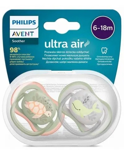 Suzete din silicon Ultra Air Verde/Gri, 6-18 luni, 2 bucati, SCF085/60, Avent