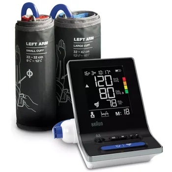Tensiometru de brat ExactFit 3, BUA6150, Braun Acuratete profesionala dovedita clinic conform metodei Societatii Europene de Hipertensiune. Proprietati: Ghid cu coduri de culori pe ecran pentru o interpretare rapida si usoara a valorilor tensiunii arteriale (pe baza ghidurilor Organizatiei Mondiale a Sanatatii). 2 dimensiuni de mansete pentru cea mai buna acuratete si mai mult confort (incluse in cutie). Optiunea de a verifica media ultimelor 3 masuratori pentru un control imbunatatit. Suporta 2 utilizatori: 2 x 40 de memorii, care arata data si ora citirii. Detector de batai neregulate ale inimii. Baterii necesare: 4 baterii AA incluse. Garantie de 2 ani din partea producatorului. Mod de utilizare: Puteti utiliza Braun ExactFit 3 impreuna cu aplicatia Braun Healthy Heart cu intrare Manual, pentru a va urmari progresul in timp. Aplicatia va ofera acces la datele dumneavoastra, oricand si oriunde, oferindu-va posibilitatea de a le impartasi cu medicul dumneavoastra.