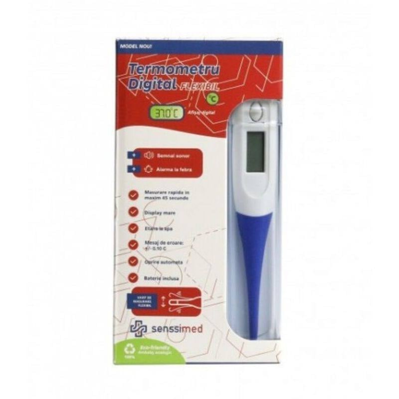 Termometrul digital flexibil Senssimed este un produs recomandat pentru uz axilar, oral si rectal.