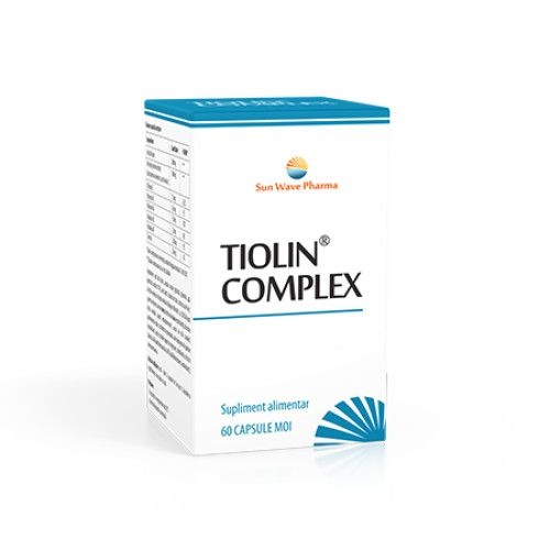 Tiolin complex, 60 capsule moi, Sun Wave Tiolin complex este un supliment alimentar ce contribuie la mentinerea funcționării normale a sistemului nervos periferic. Beneficii Tiolin complex: Eficiență în ameliorarea vitezei de conducere nervoasă, a potențialului de acțiune senzorial și a potențialului de acțiune muscular Tolerabilitate excelentă și complianță foarte bună. Ameliorează viteză de conducere nervoasă. Compoziție Tiolin complex: Acid alfa-lipoic – 300 mg – Acțiune antioxidantă și rol de a proteja celulele nervoase. Acizi grași polinesaturați (acid linoleic și acid gamma-linoleic) – 180 mg – Asigură structura și funcția normală a creierului. – Menține funcționarea normală a sistemului nervos. – Susține formarea normală a celulelor roșii. – Reface rezervele hepatice de Vitamina B12. Vitamina E – 7,5 mg Vitamina B5 – 4,5 mg Vitamina B6 – 1,5 mg Vitamina B2 – 1,2 mg Vitamina B1 – 1,05 mg Seleniu – 25 mcg Mod de utilizare Tiolin complex: oral – câte 1-2 capsule de 2 ori pe zi, sau conform recomandării consultantului de specialitate. Capsulele se înghit întregi cu un pahar cu apă. Prezentare: 60 capsule moi