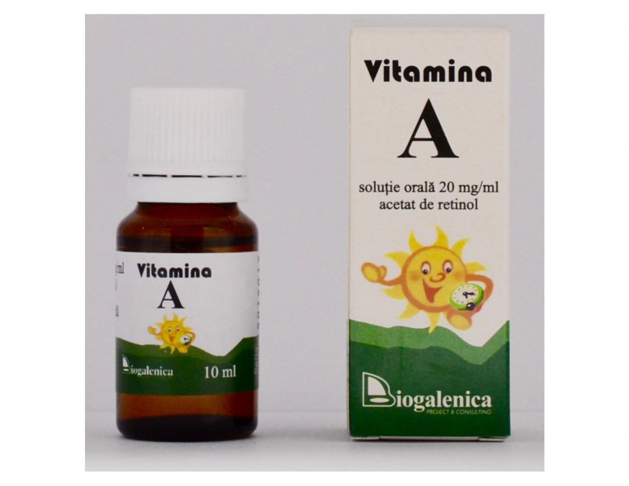 Vitamina A contribuie la mentinerea sanatatii pielii si a membranelor mucoase. Ajuta la functionarea normala a sistemului imunitar si la procesul de diferentiere celulara. De asemenea, Vitamina A contribuie la mentinerea vederii normale, precum si la metabolizarea normala a fierului. Producator Biogalenica Mod de prezentare Flacon 10 ml