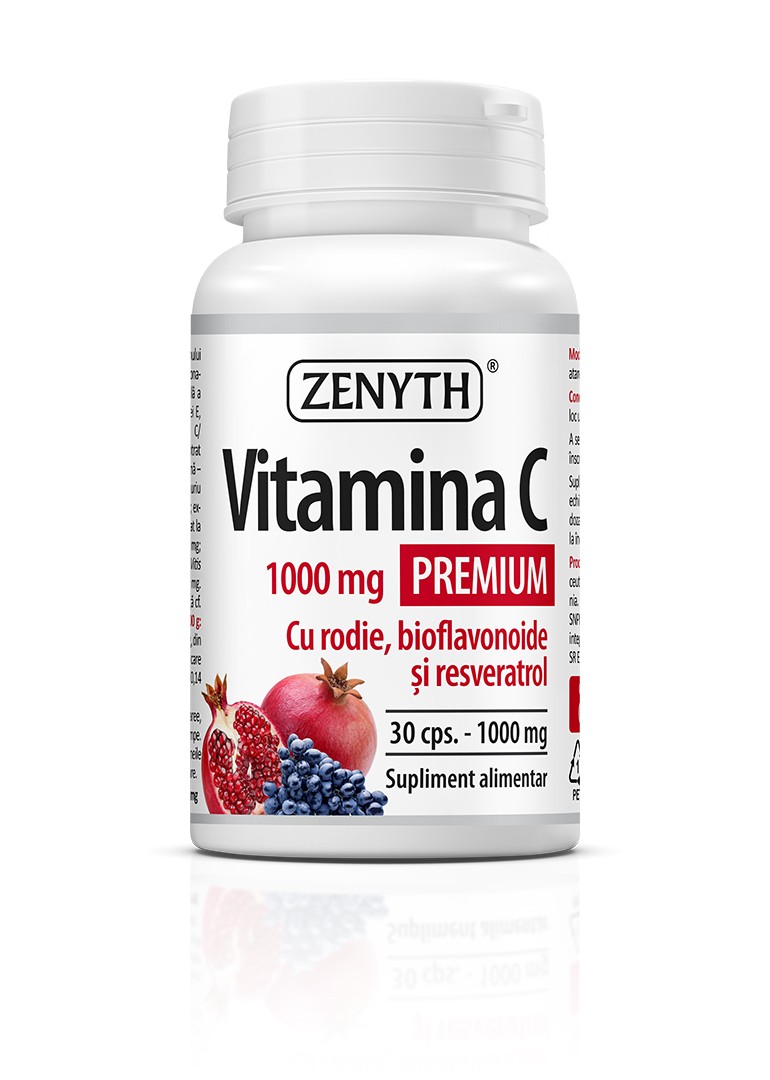 Vitamina C Premium cu Rodie și Resveratrol – 1000 mg, 30 de Capsule Descoperă puterea combinată a Vitaminei C, rodiei, bioflavonoidelor și resveratrolului într-o singură capsulă! Formula noastră exclusivă a fost concepută pentru a-ți susține sistemul imunitar și a combate semnele îmbătrânirii. De Ce Să Alegi Vitamina C Premium: – **Concentrație Maximă:** Fiecare capsulă conține 1000 mg de Vitamina C pură, oferindu-ți 1250% din Valoarea Nutrițională de Referință. – **Sinergie Naturală:** Beneficiază de combinația unică de rodie și extracte de plante bogate în bioflavonoide pentru o absorbție optimizată. – **Antioxidant Potent:** Resveratrolul din struguri și antioxidanții din rodie întăresc efectul protector al Vitaminei C. – **Beneficii Multiple:** Această capsulă ajută la stimularea producției de colagen și la regenerarea celulară, contribuind la sănătatea pielii tale. Ingrediente Premium, Fără Aditivi Nedoriti: – Vitamina C (acid ascorbic) – 1000 mg – Pulbere din suc concentrat de rodie – 221,5 mg – Extract de Morcov-purpuriu – 65 mg – Extract de portocală dulce (90% hesperidină) – 55,5 mg – Extract de pielițe de struguri (50% trans-resveratrol) – 8 mg Produsul nostru este liber de lactoză, gluten, soia, stearat de magneziu, îndulcitori sau coloranți artificiali. Mod de Administrare Simplă și Eficientă: Pentru a te bucura de beneficiile complete, ia o capsulă pe zi, fie înghițită întreagă, fie desfăcută cu pulberea dizolvată în apă. Recomandăm administrarea în timpul zilei sau conform indicațiilor specialistului tău. Siguranță și Calitate: Produsul este conceput pentru adulți, cu precauții pentru persoanele cu hipersensibilitate la ingredientele specificate sau condiții medicale speciale. Dacă apar efecte secundare la dozele recomandate, te rugăm să consulți un medic. Păstrare și Durabilitate: Păstrează flaconul într-un loc răcoros, uscat și ferit de lumină directă pentru a menține prospețimea capsulelor. Cu Vitamina C Premium cu Rodie, investești în sănătatea ta cu un produs de încredere și eficient. Încorporează-l în regimul tău zilnic pentru o imunitate de fier și o stare de bine generală!
