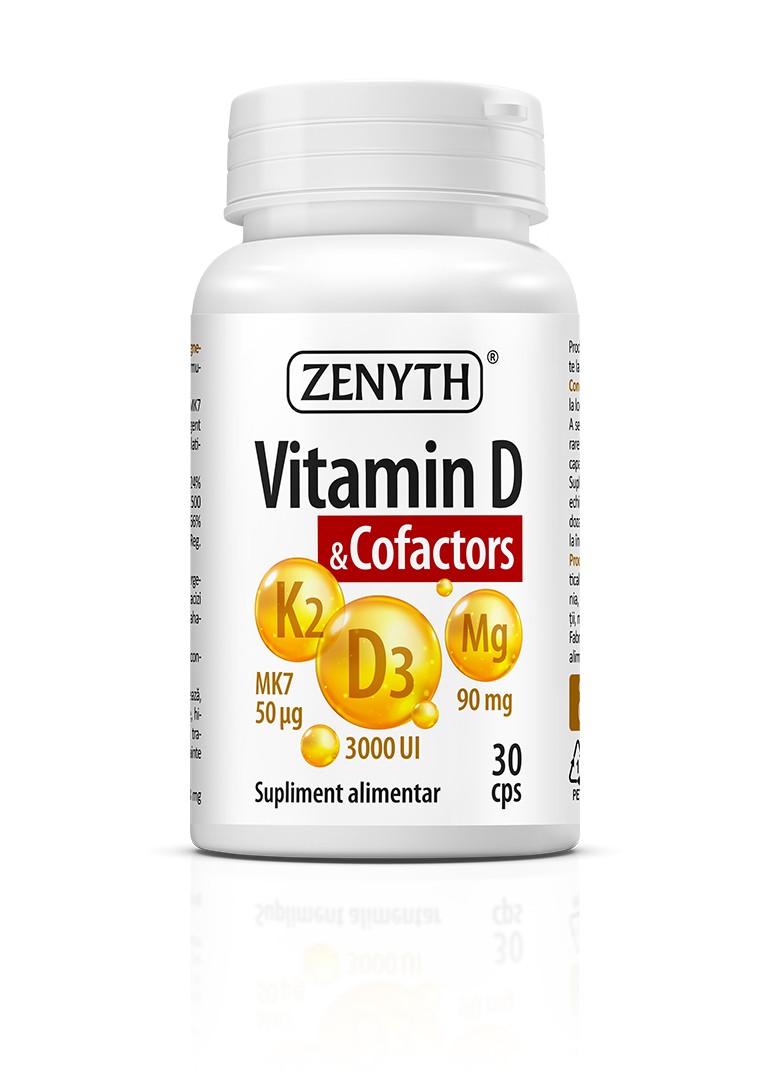 + Free ShippingVitamina D si Co-factori, 30 capsule, Zenyth 4 ingrediente esențiale pentru sănătatea oaselor, mușchilor și dinților! Vitamin D & Cofactors previne deteriorarea osoasă! Vitamin D & Cofactors este un supliment alimentar care combină acțiunea vitaminei D3 cu cea a vitaminei K2 și a magneziului, oferind o protecție excelentă împotriva pierderilor de masă osoasă. Vitamina D joac