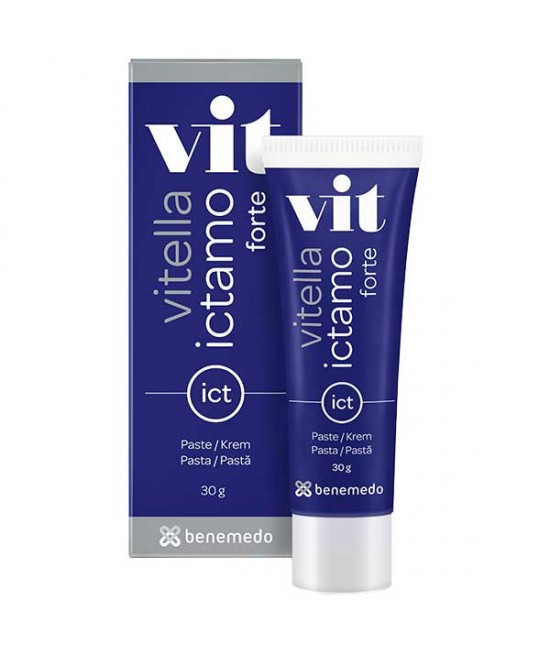 + Free ShippingVitella Ictamo Forte crema, 30 g, Benemedo Crema Vitella Ictamo Forte pentru modificări dificile ale pielii este un produs specializat cu eficientă sporită antiinflamatoare, antifungice, antibacteriene si anti-mancărime. Pentru pielea cu probleme. Poate fi utilizata pentru: acnee , seboree, cicatrici, simptome de atopie – mancărime, roseată. Contine 3% concentratie de ihtiol limpede, care ca